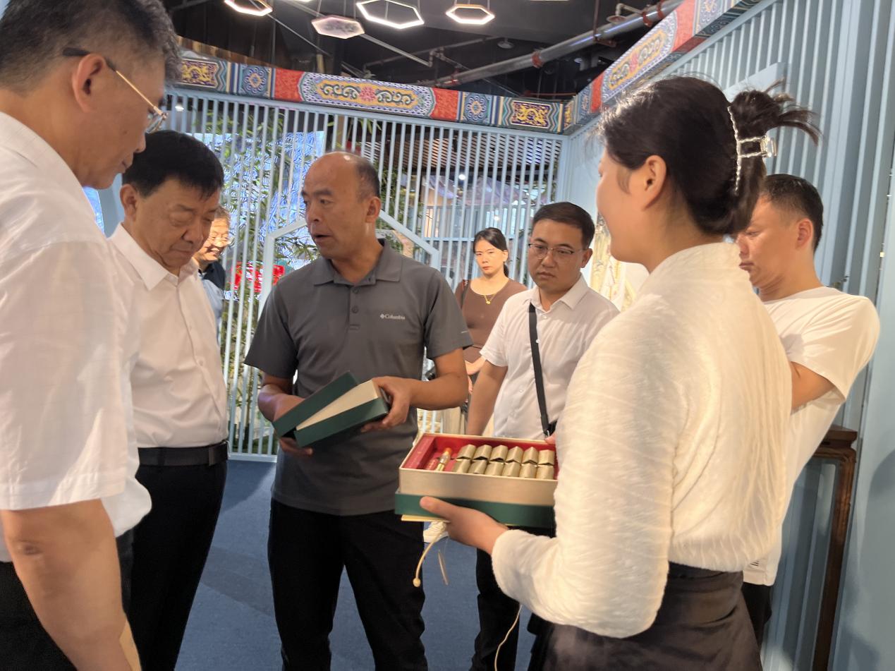 最后,调研组来到了“悦读故宫”展区,参观了“故宫牡丹文化创意展”,欣赏了科技园与故宫博物院出版社共同创新研发的故宫文创产品,并品鉴了菏泽首款牡丹花蕊红茶。