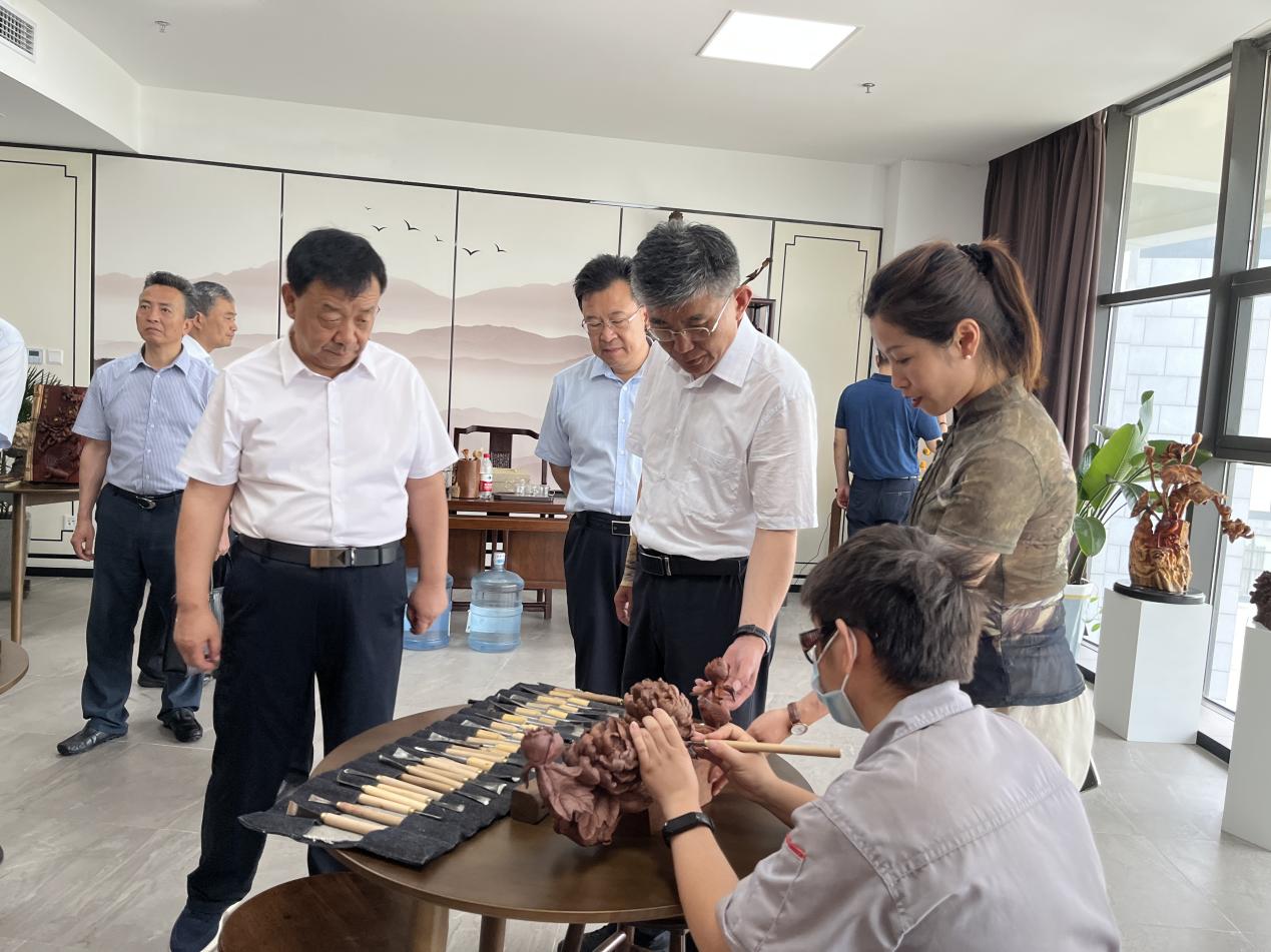 随后,调研组深入“大师工作室”,现场观摩了“曹州根雕”、“曹州面人”、“曹州泥塑”等非遗项目的创作过程并与非遗传承人进行交流。