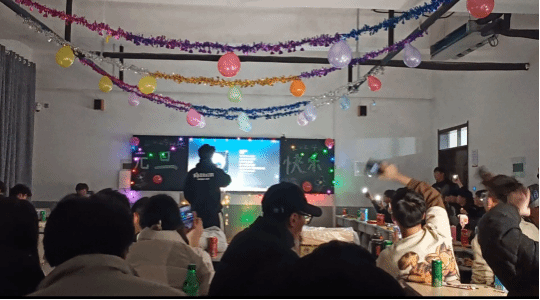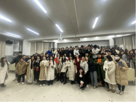 22中小创、23数会2班6班、7班在合堂教室举办了“元旦晚会”。首先,赫惠新主任和徐阳昭老师热情致辞,在讲话中不仅回顾了这一学期的成就,并对新的一年给予厚望,随后由师生共同演唱为这次晚会增添了欢乐迎新年的气氛。晚会的节目也是多姿多彩,包括了歌唱、舞蹈、合唱、还有随机抽签等等多个活动。其中包含歌曲《全是爱》《最炫民族风》《背对背拥抱》《陷阱》等等多式多样的歌曲。王彤表演的舞蹈“科目三”,更是让全场热情澎湃。