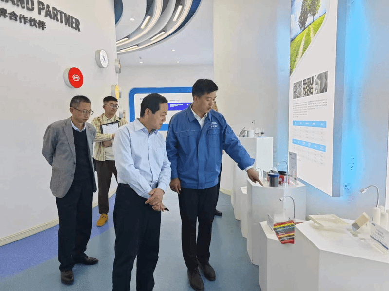 在朗峰新材料(菏泽)有限公司,侯德涛一行参观了企业展览馆,与企业HR进行座谈交流,详细了解了公司的发展历程和企业的生产经营情况,并就学生实习就业进行了深入的交流。