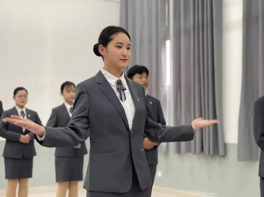 3月17日下午三点,汇报活动正式开始。首先进行授旗仪式,成立“舜和精英班”,以此突出订单培养模式,给予学生鼓舞和激励。接着进行汇报展示,学生队列整齐,动作准确优美,展示较强的职业素养和专业技能。