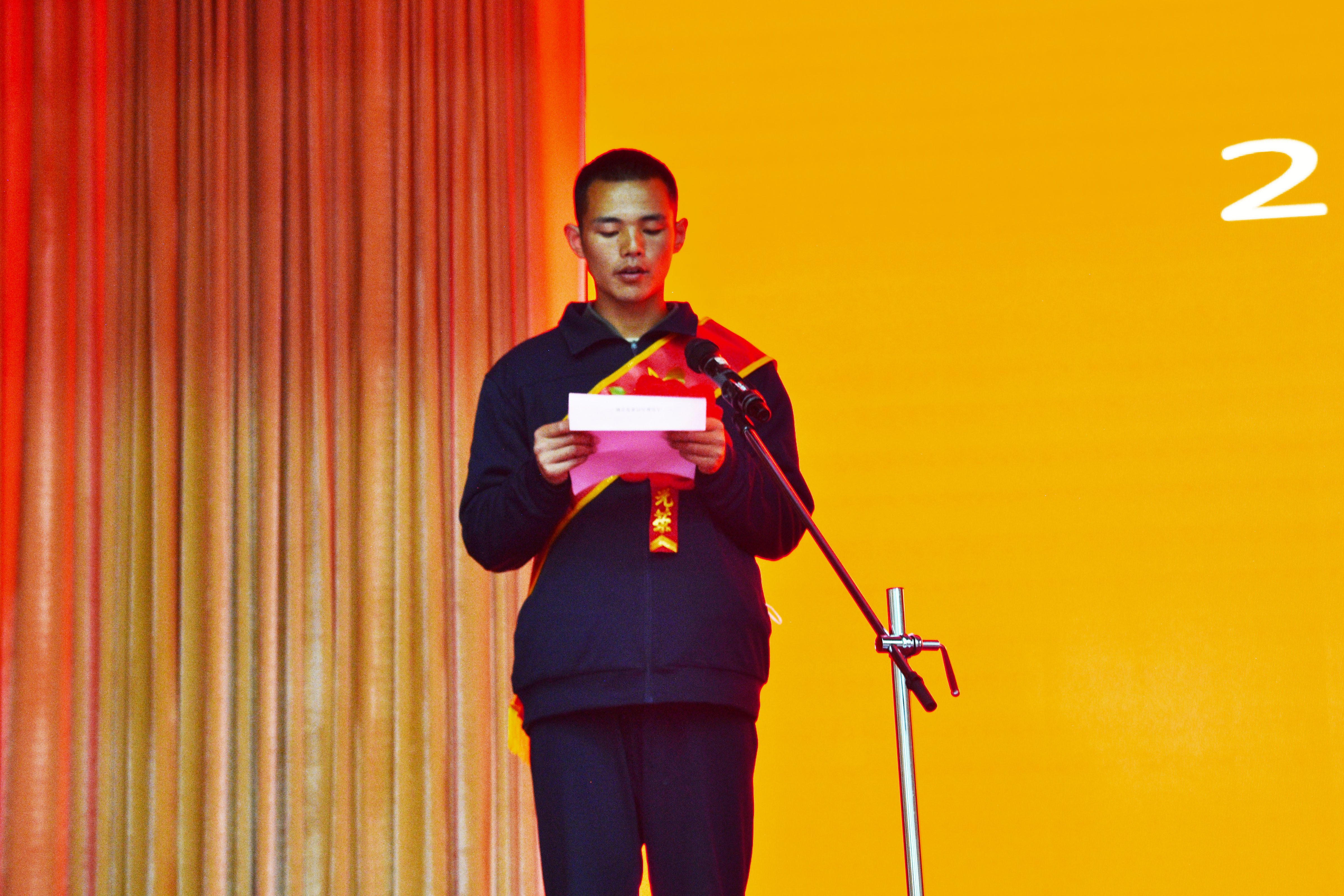 新兵家长代表和新兵代表分别上台发言。家长代表徐桂兰表示在和平年代的今天,“送子参军”仍然是家长们应尽的职责,作为军人家属,要坚决拥护党的政策,做好自己的本职工作,妥善处理好家中一切事务。新兵代表陈治国代表所有的新战友向领导、父母保证,到部队后一定会刻苦训练,努力学习,遵守纪律,服从领导,尽快成长为一名合格的,优秀的军人,决不辜负祖国和人民的期望。