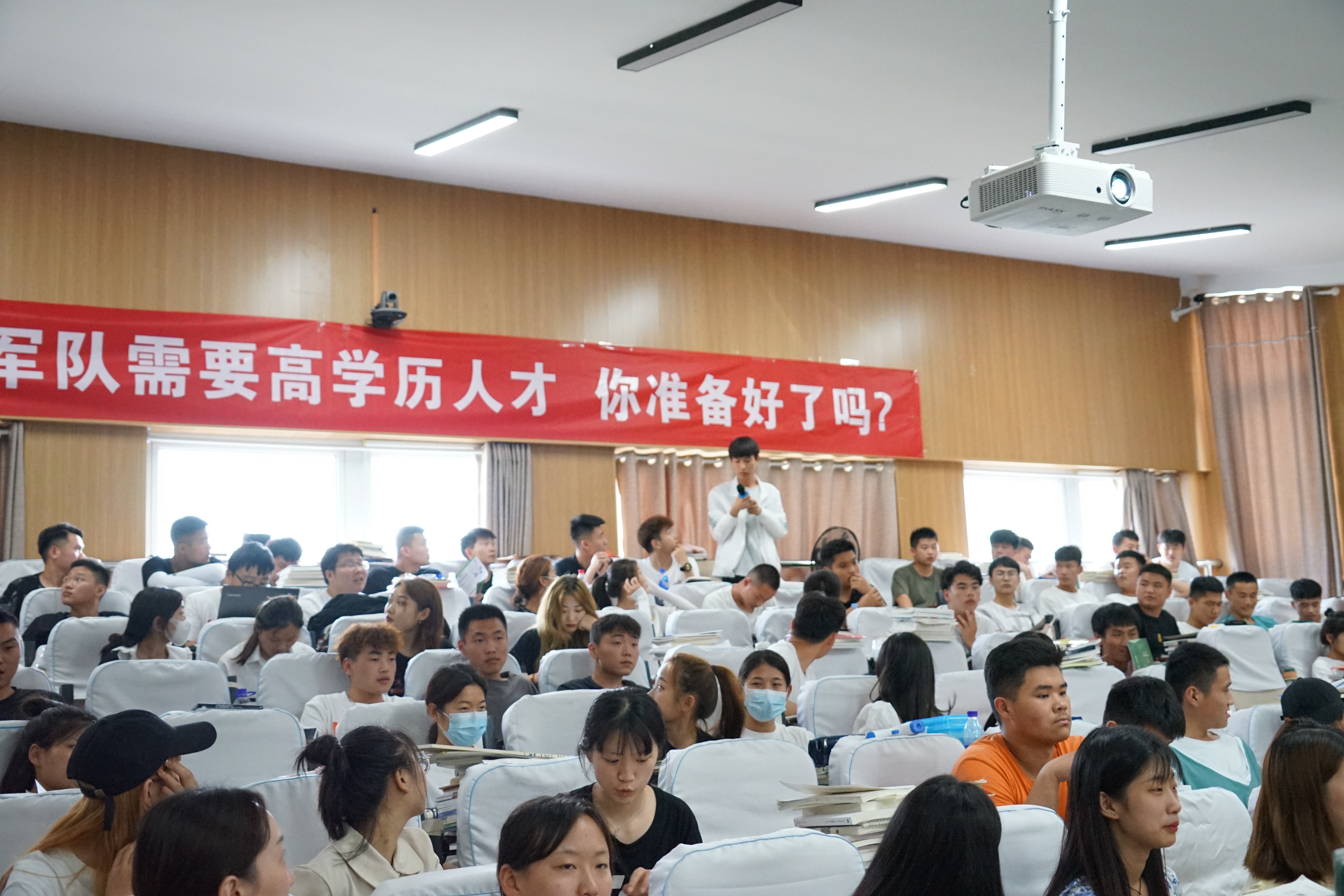 刘汝县部长从“为什么要当兵”和“当兵有哪些收获”两个方面向同学们做了动员。刘部长指出,我们要建设世界一流军队,实现强国梦,推进军事改革,一个重要方法就是提高兵员素质。刘部长围绕在部队继续深造、士兵提干、优抚待遇等方面为opta官网学生详细讲解相关政策。