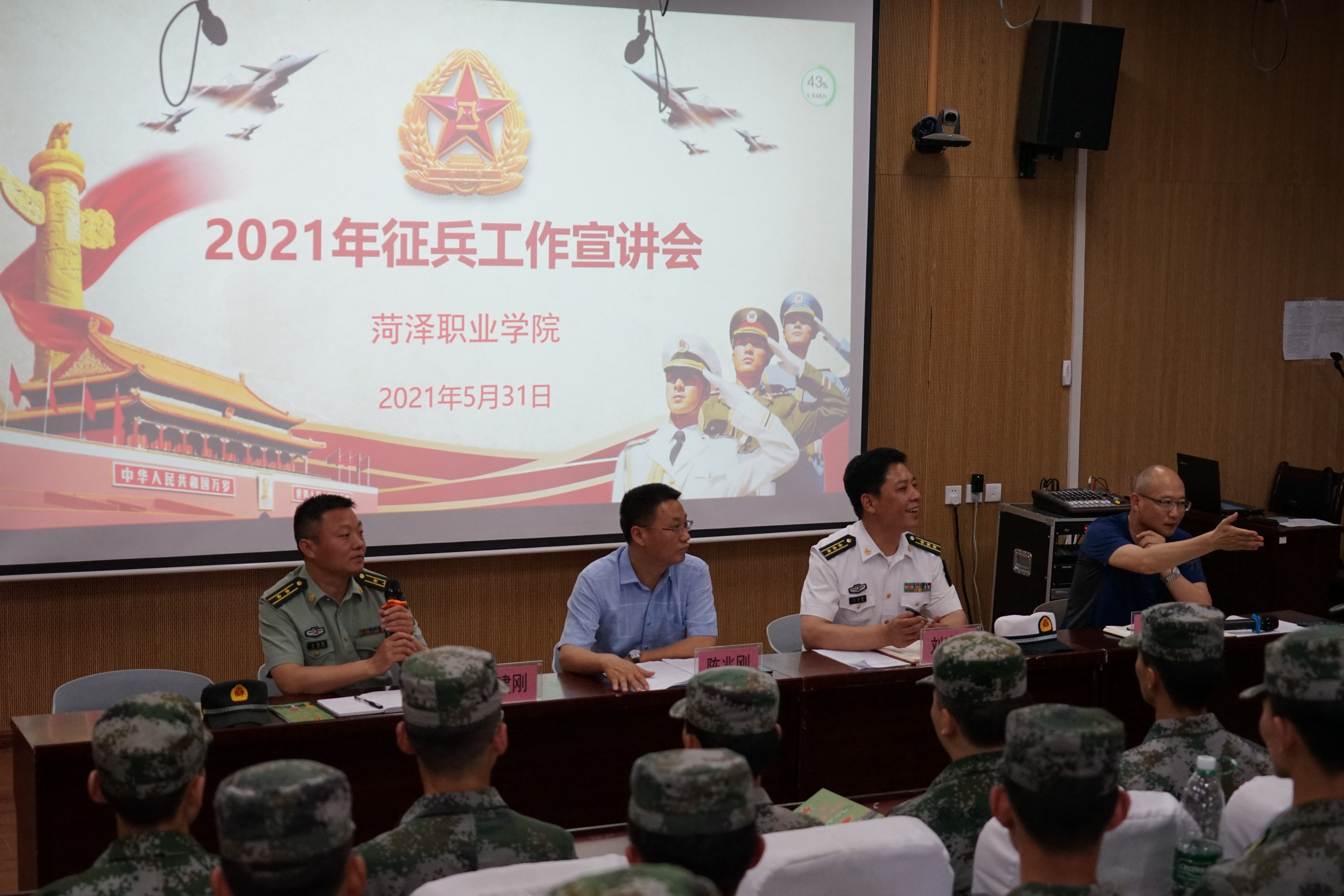为做好opta官网2021年夏秋季大学生应征入伍动员组织工作,帮助opta官网青年大学生更加全面地了解征兵政策,激发参军报国热情,5月31日下午,校武装部召开2021年夏秋季征兵政策宣讲会。牡丹区委常委、区人武部部长刘汝县,牡丹区人武部军事科科长朱建刚,学生工作办公室主任陈兆刚,副主任解江平出席会议。报名参军积极分子和各系部征兵工作负责同志参加会议。会议由解江平主持。