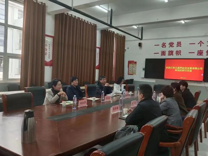 周宝玉首先向江苏无国界航空发展有限公司一行表示热烈欢迎。双方就教学资源建设、教学大赛、社会服务、实习就业等方面进行了洽谈。周宝玉就模拟机场建设、飞机模型采购及模拟舱未完成事项等事宜提出意见和建议。尹涓承诺将尽快完成上述建设,并表示希望通过校企之间建立的合作桥梁,真正达到合作共赢、产学研深度融合。